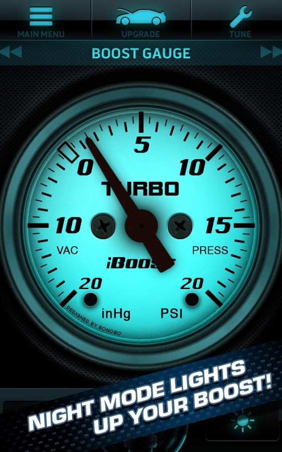 iBoost knows when you back off the throttle just cruising or when you shift hard while accelerating. Compressor surge, wastegate, blow off - its all there! Choose from 7 photo-realistic gauges that show your "boost" as you drive and work just like the real thing!